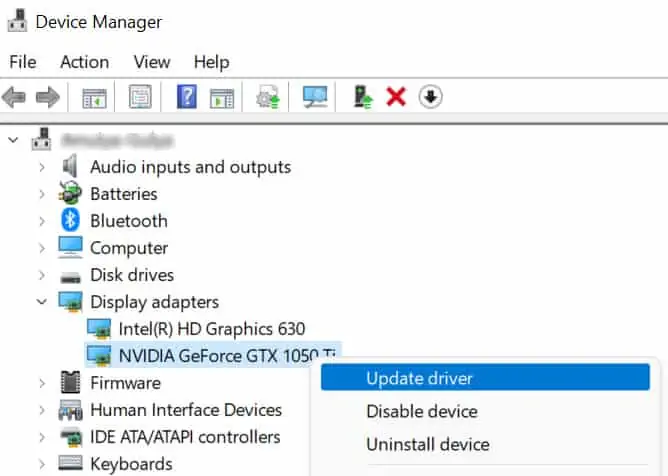 2. ඊලගට Display Adapters expand කරලා graphics device වල right-click කරන්න.