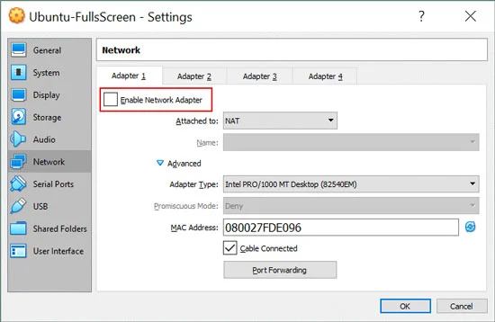 3. Network Adapter එක disabled කරලා තියෙනකොට VM එක start කරන්න.