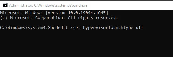3. දැන් bcdedit /set hypervisorlaunchtype off මේ command එක type කරලා Enter press කරන්න.
