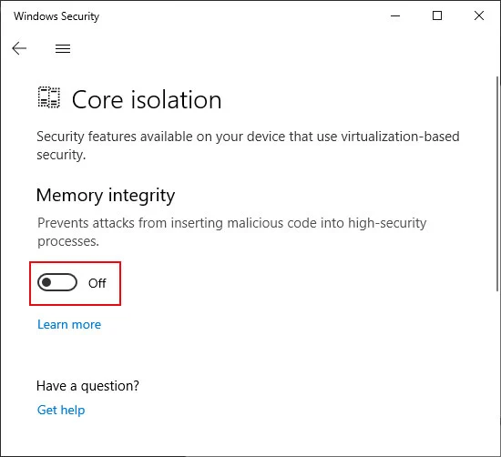 3. දැන් Core isolation details වලට ගිහින්, Memory integrity off කරන්න.