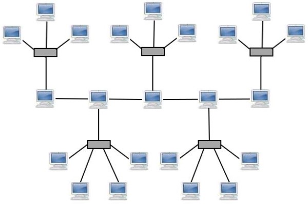 ගසක අතු බෙදෙන ආකාරයට design කරලා තියෙන topology වලට tree topology කියලා කියනවා. මේ topology එකේදී ශාඛා වල අතු බෙදලා තියෙන නිසා වෙන් වෙන්ව පාලනය කරන්න පුලුවන් වෙලා තියෙනවා. හැබැයි main line එක අක්‍රීය උනොත් ඒකට සම්බන්ධ සේරම ශාඛා ජාලත් අක්‍රීය වෙනවා. ඒ වගේම තමයි මේ වගේ network එකක සැකසීම හා නඩත්තු කිරීමේ කරයුතු තරමක් අපහසු වෙනවා. ඒ විතරක් නෙවෙයි ඒකට ලොකු cost එකකුත් වැය වෙනවා.