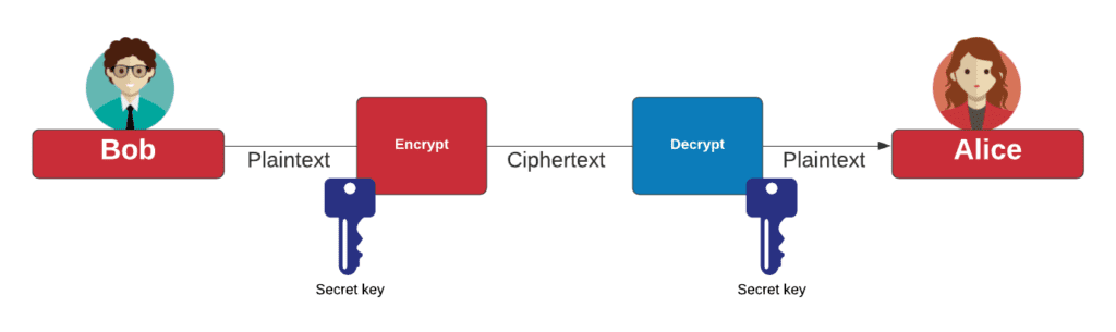 හරි ඔයා හිතන්නකෝ A, B ට encrypt කරලා message එකක් යවනවා කියලා. මේකෙදී A, encryption key එකක් use කරලා තමයි message එක encrypt කරන්නේ. දැන් B ට මේ message එක read කරන්න නම් අනිවාර්යෙන්ම A use කරපු encryption key එකෙන් data decryption කරන්න ඕනි.