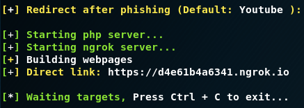 මේ අවස්ථාවේ Lockphish එකෙන් phishing server එක setup කිරීම සහ unique URL එකක් නිර්මාණය කරනු ලබනවා. ඒ phishing attack එක සිදුකිරීමටයි. අපි මේ ගන්න උදාහරණයට අනුව නම් URL එක (https://d4e61b4a6341.ngrok.io)_වේ. මේ වගේ link එකක් user කෙනෙක්ට යවලා එය click කිරීමට අවධානය ගන්න නම් phishing email එකක් යවන්න වෙනවා.