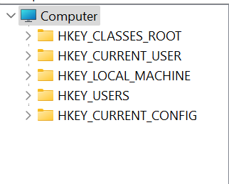 Registry editor එක open කරපු ගමන් ඔයාට මේ විදියට files 5 ක් බලා ගන්න පුලුවන් වෙනවා. මේවට අපි logical hives කියලා කියනවා. මොකද මේ files 5 මත base වෙලා තමයි computer එකේ අනෙත් වැඩ සේරම වෙන්නේ.