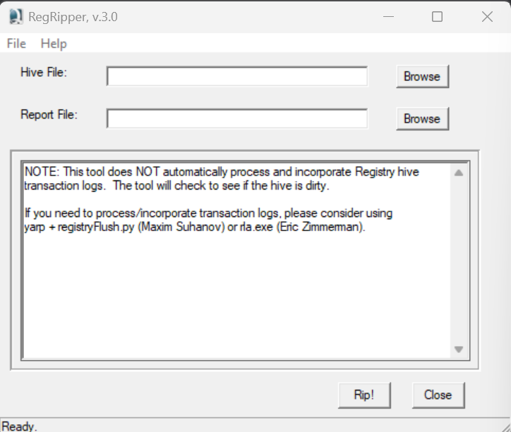 RegRipper කියන file එක download කරාට පස්සේ ඔයාට මේ වගේ interface එකක් බලා ගන්න පුලුවන් වෙයි.