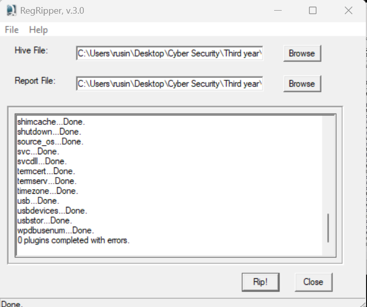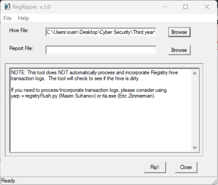 මුලින්ම ඔයාට කරන්න තියෙන්නේ RegRipper tool එකට file path එක දෙන එක.