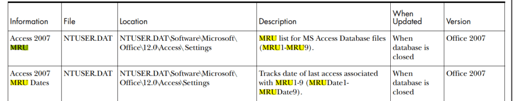 හරි. මේ document එකට අනුව නම්, recreantly accesses files අදුර ගන්න පුලුවන් අපට MRU කියන key word එකෙන්.
